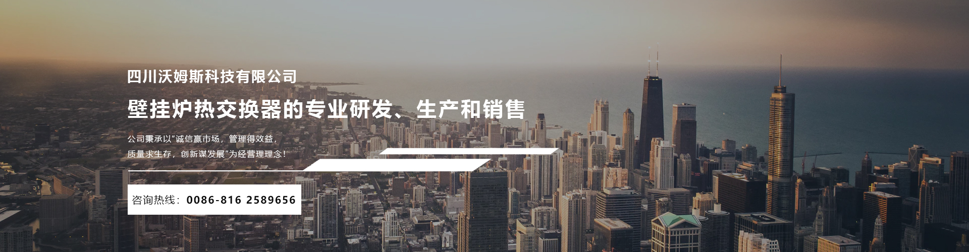四川沃姆斯科技有限公司座落于環(huán)境優(yōu)美的中國(guó)科技城----四川省綿陽(yáng)市。 公司成立于2006年,是一家從事壁掛爐熱交換器的專業(yè)研發(fā)、生產(chǎn)和銷售的生產(chǎn)廠家。經(jīng)過(guò)9年發(fā)展,匯集了一批擁有行業(yè)領(lǐng)先技術(shù)和豐富應(yīng)用經(jīng)驗(yàn)的優(yōu)秀人才?,F(xiàn)代化的生產(chǎn)設(shè)備,先進(jìn)的生產(chǎn)技術(shù)工藝及各種精密的檢測(cè)設(shè)備,我們擁有年產(chǎn)量高達(dá)100萬(wàn)臺(tái)的生產(chǎn)能力,能急客戶之所急,想客戶之所想,在市場(chǎng)中贏得客戶的一致認(rèn)可。 公司秉承以“誠(chéng)信贏市場(chǎng),管理得效益,質(zhì)量求生存,創(chuàng)新謀發(fā)展”為經(jīng)營(yíng)理理念!憑借高質(zhì)量的產(chǎn)品,完善的售后服務(wù),良好的信譽(yù),贏得市場(chǎng)! ...